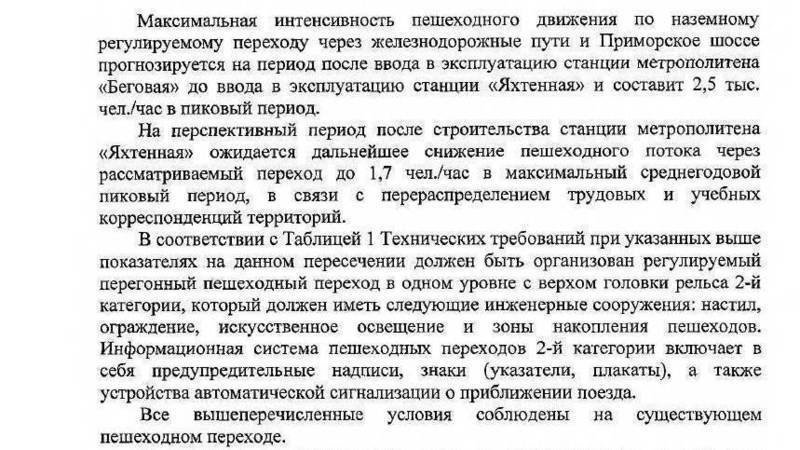 Комитет по развитию транспортной инфраструктуры (КРТИ) Санкт-Петербурга в очередной раз признал смертельный переход на Туристской безопасным. По мнению КРТИ, на существующем пешеходном переходе соблюдены все условия (текст письма - на фото).