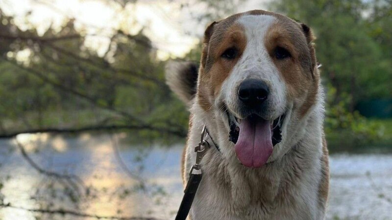 На фото алабай 2,5 года из Подольска. Его грозятся пристрелить прямо на участке владельцев. Парня хозяева сейчас спрятали на частной передержке и срочно ищут ему дом.