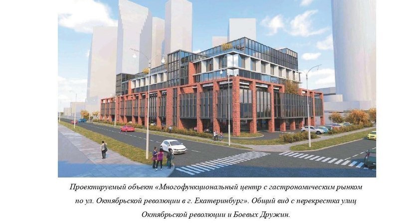 На сайте Управления государственной охраны объектов культурного наследия Свердловской области размещен для общественного обсуждения (в срок до 16.07.21) Акт государственной историко-культурной экспертизы документации, обосновывающей меры по обеспечению сохранности при строительстве объекта «Многофункциональный центр с гастрономическим рынком по ул. Октябрьской революции». Документ доступен по ссылке: https://okn.midural.ru/sites/default/files/expertiza/2021/akt_razdel_ekaterinburg_mfc.pdf