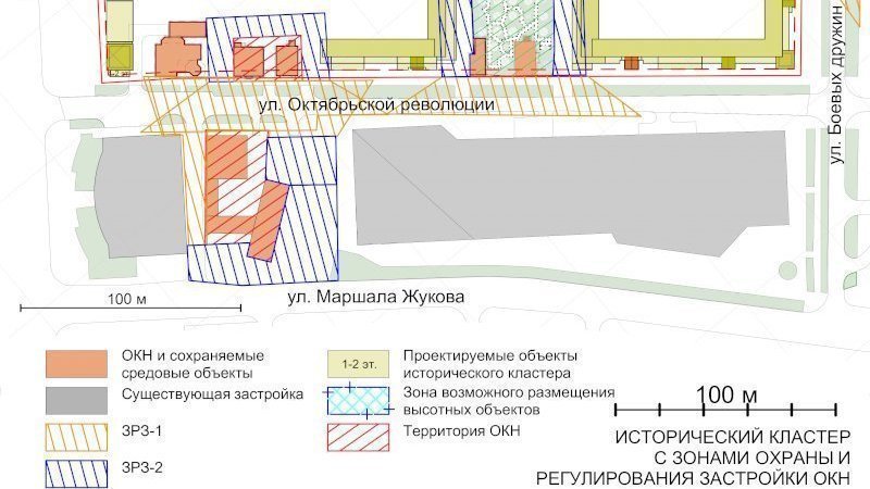 Концепция исторического кластера, представленная застройщиком в качестве аргумента для утверждения уполномоченным органом сильно сокращённых зон охраны памятников, при всей её недостаточности для полноценной защиты ОКН, включала в себя несколько полезных решений: