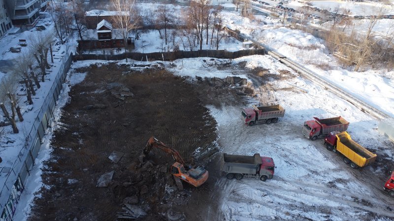 В экстренном порядке экскаваторы выкапывают стены, цоколи, фундаменты исторической застройки, а большегрузы сразу же вывозят. Информационного щита с указанием разрешения на работы нет.