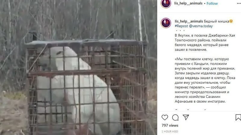 В Якутии поймали белого медведя и собираются отправлять его в зоопарк https://www.instagram.com/p/COwsBEonrfE/?igshid=l9v56nqar1xv