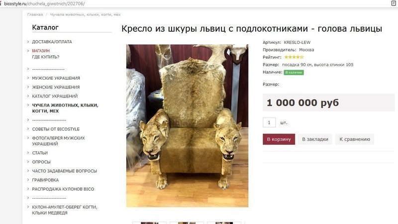 Было не понятно, почему ни одно из ведомств не предпринимало никаких шагов в отношении торговли изделий из дериватов львов, и я решила выяснить статус льва в России как таковой.