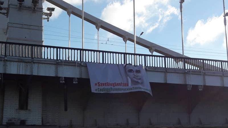 На Крымском мосту в Москве рано утром в среду был вывешен баннер за освобождение Сенцова и всех политзаключенных. Цель акции, говорится в пресс-релизе, - "разбудить задремавшее общественное сознание". "Нельзя успокаиваться, нельзя отставать от Кремля, пока Сенцов и другие политзаключенные не окажутся на свободе!" - подчеркивают активисты.