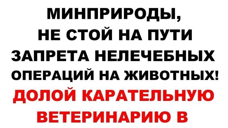 Может вы, наконец, рискнете честно сообщить Правительству, что вопрос хирургических операций на животных без медицинских показаний не входит в вашу компетенцию?