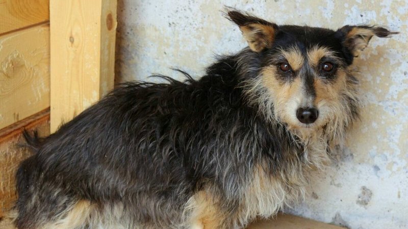 Найде 8 месяцев очень хорошая добрая собачка, но её прежняя тяжёлая жизнь наложила на неё отпечаток. Найда очень боится, сидит прижавшись в уголочек в своём вольере.