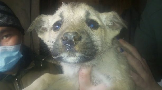 Дорогие друзья! Сегодня, Виолетта зайдя на второй этаж, где сидят маленькие щенки, в том числе и щеночки от слепой мамы, которую до сих пор не могут поймать волонтёры, она убегает в выкопанные траншеи в поле и поймать её невозможно, она обратила внимание, что один щенок перестал кушать, она его подняла и обнаружила, что у него выпала кишечка.