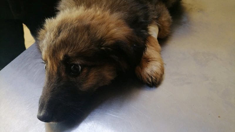 Состояние щенка Потапа стабильно тяжелое, лежит тряпочкой, у него открылся кровавый понос. И это при том, что его интенсивно лечат. Сегодня он смог немного поесть.