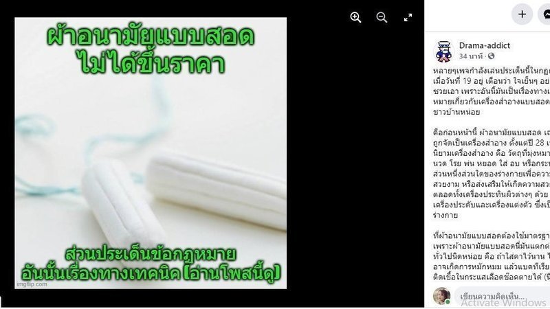 ตามที่มีการแชร์เอกสารบนหน้าเว็บไซต์ราชกิจจาฯ กำหนดให้ผ้าอนามัยชนิดสอดจัดเป็นเครื่องสำอาง มีผลบังคับใช้ตั้งแต่วันที่ 19 กรกฎาคม 2564 แล้วก็มีการตั้งข้อสังเกตว่าอาจจะทำให้มีการ ‘ขึ้นราคา’ ผ้าอนามัยแบบสอดหรือไม่ เพราะถ้าจัดเป็นเครื่องสำอาง ซึ่งถือว่าเป็นสินค้าฟุ่มเฟือย อัตราภาษีจะอยู่ที่ 30%
