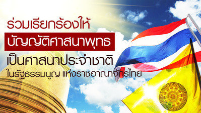 All in all, Buddhists and the campaign supporters implore the officials and authorities who have undertaken the duty consideration of the draft to “Regulate Buddhism as National Religion” in the constitution as soon as possible for recognition of paying highest respect to the king, the nation and the religion as they are shown in our national flag and as we have practiced and lived peacefully and prosperously since long ago. We are fortunate to have great kings who have paid highest respect to Buddhism and dedicated their royal highnesses in ruling righteously; yet, people in current existence misbehave unworthy of such fortune leading their minds and souls to slump into corruption and defectively lacking of recognizing rights from wrongs. Regulating Buddhism to be national religion is necessary and priority in order to resolve people’s deficient in common consciousness, to restore virtue, ethic and morality and to reinstate goodness and peace back to the society.