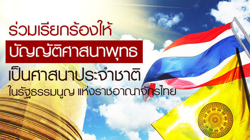 ด้วยบทความดังกล่าวข้างต้น กลุ่มชาวพุทธและผู้ร่วมสนับสนุนแคมเปญนี้ ขอเรียกร้องให้ผู้มีอำนาจ หน้าที่ ในการพิจารณาร่างรัฐธรรมนูญที่จะเกิดขึ้นในอนาคตอันใกล้นี้ ได้โปรดพิจารณา “บัญญัติ พระพุทธศาสนาเป็นศาสนาประจำชาติ” ไว้ในร่างรัฐธรรมนูญ เพื่อเทิดทูนชาติ ศาสนาและพระมหากษัตริย์ ตามแบบที่เคยมีมาแต่ครั้งอดีตที่เราอยู่กันมาด้วยความร่มเย็นเป็นสุข เพราะเรามีพระมหากษัตริย์ที่เคารพเทิดทูนพระพุทธศาสนา และปกครองแผ่นดินโดยธรรมมาจวบจนปัจจุบัน แต่คนในชาติได้ห่างไกลจากพระพุทธศาสนาออกไปทุกที ทำให้จิตใจคนตกต่ำ บกพร่องเรื่องความละอายชั่วกลัวบาป จึงเห็นสมควรให้มีการบัญญัติ พระพุทธศาสนาเป็นศาสนาประจำชาติ เพื่อย้ำเตือนและทำให้ประชาชนได้ตระหนักว่า พุทธศาสนาเป็นศาสนาประชาติ ที่ทุกคนมีหน้าที่ของตนในการช่วยกันธำรงพุทธศาสนาด้วยการมีศีลธรรม เพื่อความดีงามและความร่มเย็นของประเทศชาติในกาลต่อไป
