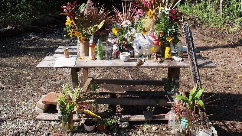 この写真は、2016年うるま市20歳女性強姦殺人事件死体遺棄現場。呼びかけにも書いたように、私は、行方不明から殺人事件報道まで連日顔写真入りの沖縄の新聞を食い入るように見ていたからでしょうか、その翌年にこの現場に立った時、思わず、本当に意識不明のようなふわふわした状態で、「ウオー!ウオー!」と大声を上げながらしばらく泣き叫んでしまいました。この時の手に汗握るような後で気づいた感触を忘れることが出来ません。犯人は、事件後、日本では (性被害者が被る)「文化的社会的スティグマ」が理由で、性暴力の報告率が低いため、自分が逮捕されるなどとは思っていなかった、と述べていたということです。遺族は、事件から1年後、「今なお、米兵や軍属による事件事故が相次いでいます。それは沖縄に米軍基地があるがゆえに起こることです。一日でも早い基地の撤去を望みます。それは多くの県民の願いでもあるのですから」と語ったとのことです。