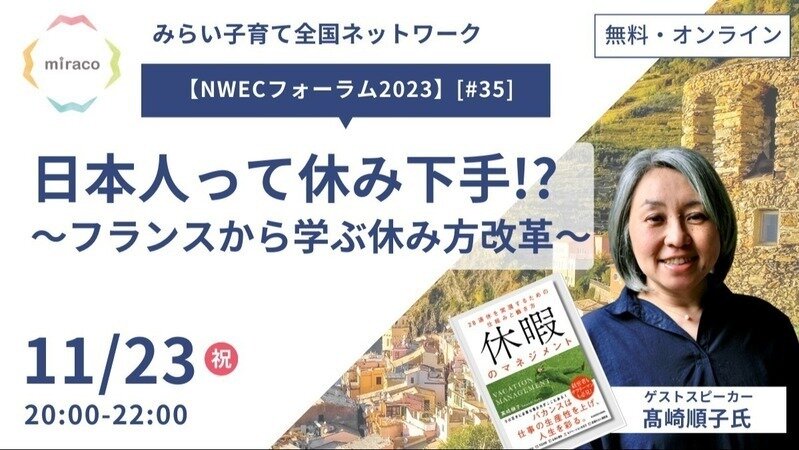 【NWECフォーラム2023】[#35]日本人って休み下手!?~フランスから学ぶ休み方改革~ | Peatix