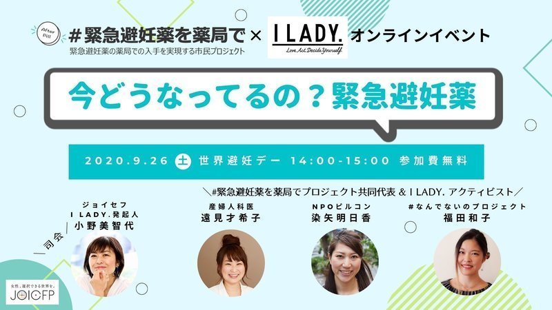 【イベント】9/26世界避妊デー #緊急避妊薬を薬局で × I LADY. オンラインイベント【今どうなってるの?緊急避妊薬】開催