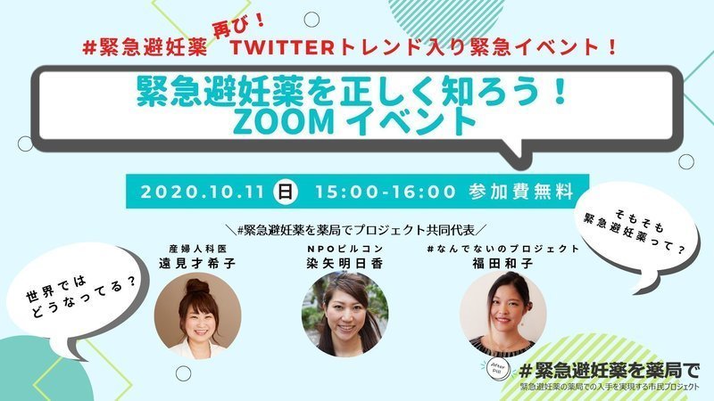 【#緊急避妊薬 トレンド入り緊急イベント! 緊急避妊薬を正しく知ろうZOOMイベント <みんなの疑問を解消!> <世界のスタンダードは?> 】