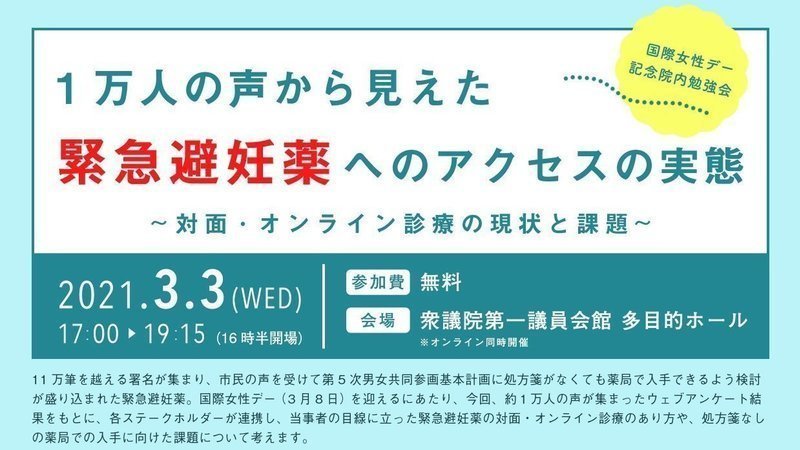 国際女性デー記念 院内勉強会 1万人の声から見えた緊急避妊薬へのアクセスの実態~対面・オンライン診療の現状と課題~