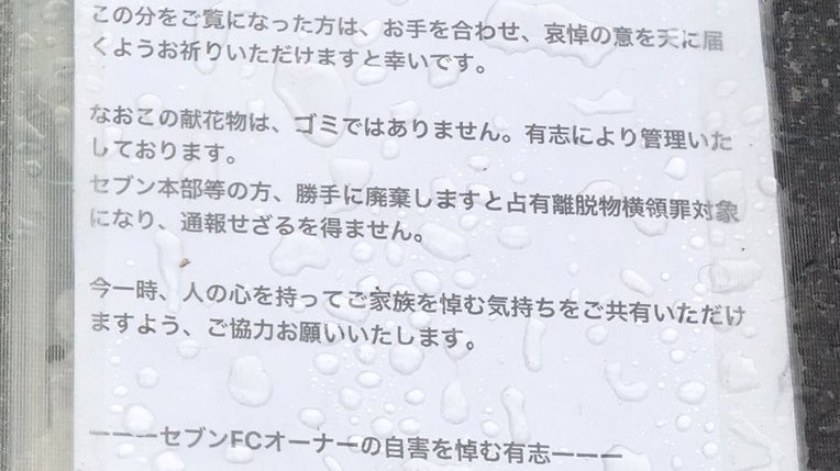 今年春に北海道に失踪し、保護されたセブンイレブン東日本橋のオーナーが自死しました。
