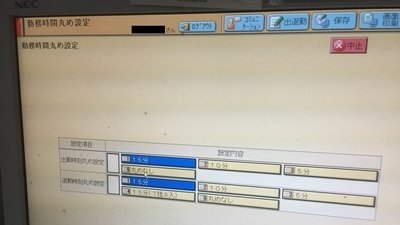 株式会社サークルKサンクスがフランチャイジーに提供している勤怠システムには、「勤務時間丸め設定」なるものがあります。その設定では、「15分」「10分」「5分」の単位で出退勤の時刻を「丸め」てしまい、切り捨てることができるようになっています。