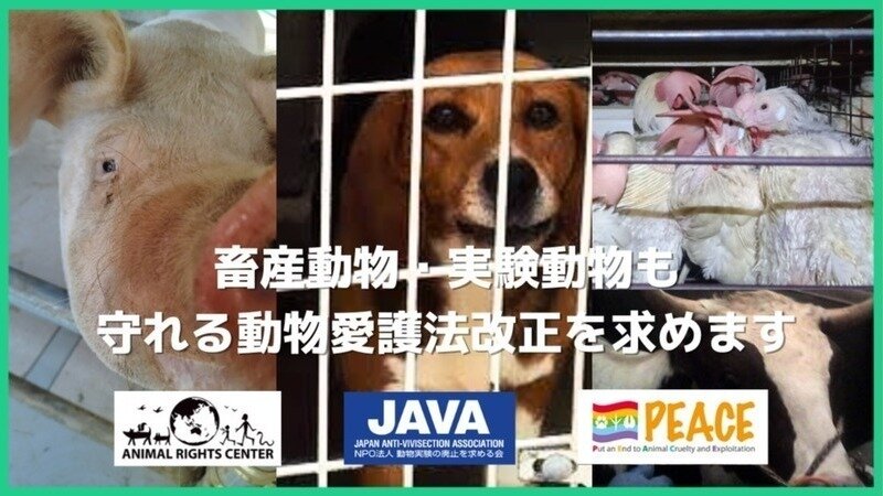 この署名を行っている私たちJAVAとPEACEにアニマルライツセンターを加えた3団体は、動物愛護法改正に関する署名の呼びかけを行っています。