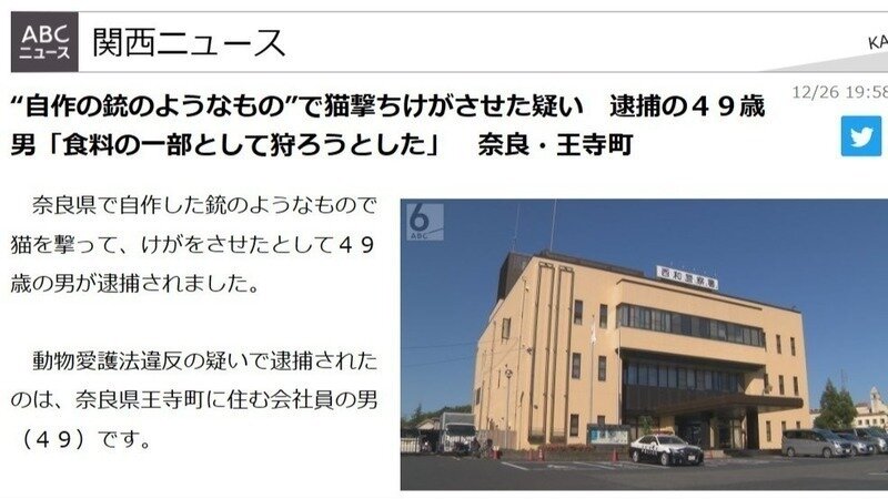 男は警察の調べに対し「猫を食料の一部として狩ろうとしただけで、むやみやたらに傷つけようとしたわけではない」と話しているということです。