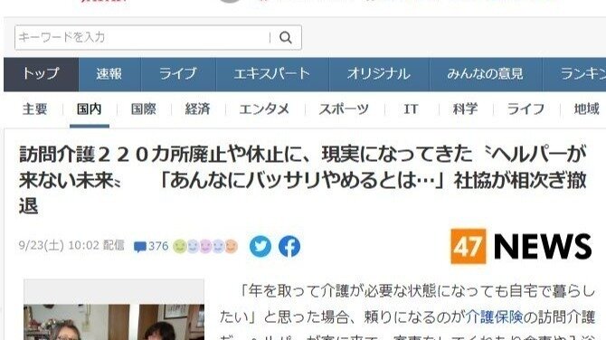訪問介護220か所廃止や休止に現実的になってきた・・・YahooWEB版全文読めます