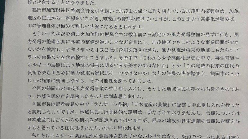 鶴岡市議会3月議会 地元の一部住民と自民系議員と結託して、市長の中止要請を撤回する請願を提出してきました。