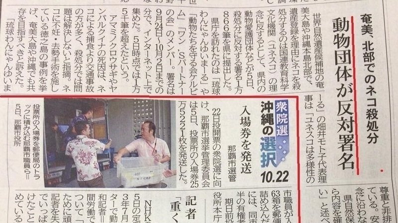 琉球新報に署名提出の記事が掲載されました。 たくさんの方に関心を持ってもらえますように。 そして、声をあげることができない命の声が届くことを願っています。2017年10月7日現在、署名は約37000にもなっています。引き続き署名は集めます。 みなさまの応援ご協力どうぞよろしくお願い申し上げます。