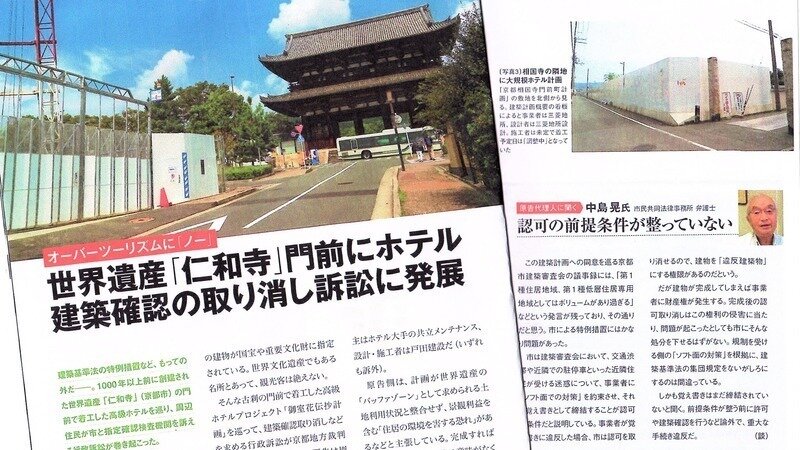 日経アーキテクチュア2024.11.14「令和の近隣紛争」特集記事で、仁和寺門前のホテル建設について紹介されました。