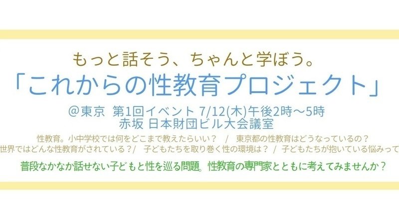 この度、性教育に関わる団体にて「これからの性教育プロジェクト」を立ち上げ、保護者の方と性教育について考え、声を議員に届けるイベントを赤坂の日本財団ビルにて開催いたします。