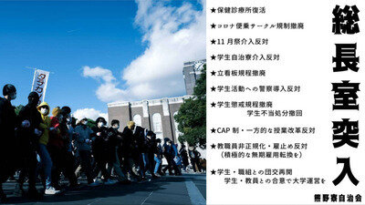 2022年度寮祭企画「総長室突入」は学生との対話を拒み強権的に管理強化を進める京都大学当局に対する抗議の直接行動として、以下のような事項を要求した。