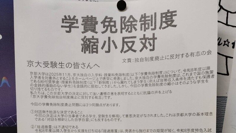 京大独自の入学料・授業料免除制度変更に 反対する会京大, Japan