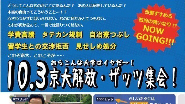 明日10月3日12時から、「京大解放・ザッツ集会」を開催します。そこで、停学撤回署名と同学会執行員会からの総長団交申入書を職員に提出します!