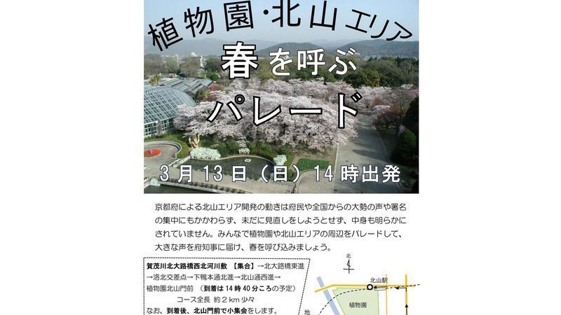 Petition update京都府立植物園が危ない!「生きた植物の博物館」の存続にあなたのお力をお貸しください! The Kyoto Botanical Gardens are in danger!植物園・北山エリア「春を呼ぶパレード」やります!集まりましょう!