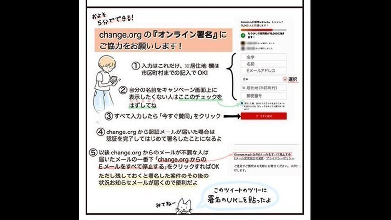 まず、美濃やまびとさんという方がすばらしい漫画をつくって下さいました。ネット署名のやり方まで解説していただいています。下のURSからご覧ください。お陰様で、昨夜からまた署名が広がり始めました。すべての署名を合わせると8万筆を一気に突破して9万筆に迫ろうとしています。10万筆を目指しています。