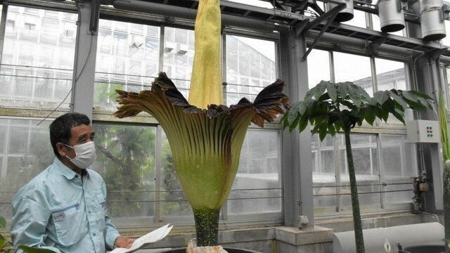 (苦節30年ついに咲いた京都府立植物園「世界最大の花」大こんにゃくの花 2021.7.16)