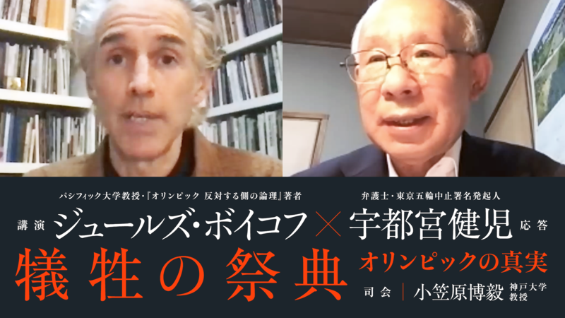 先日、6月13日(日)にオンラインで実施されました、『オリンピック 反対する側の論理』著者でパシフィック大学教授のジュールズ・ボイコフ氏と宇都宮健児の対談イベント「犠牲の祭典──オリンピックの真実」(主催:東京五輪を問う緊急講演会実行委員会、共催:チーム宇都宮けんじ)のアーカイブ動画を公開しましたので、お知らせいたします。