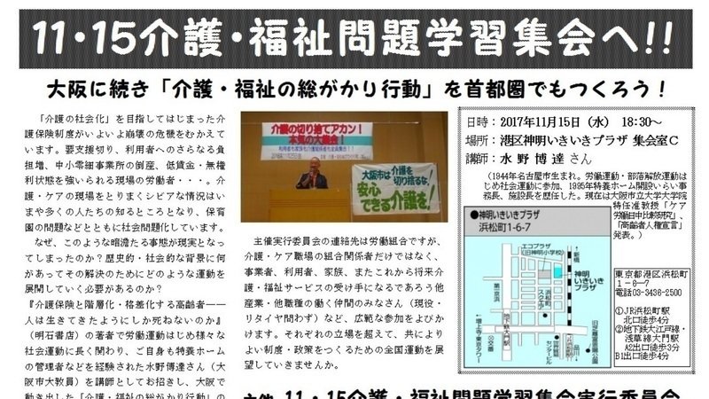 11・15介護・福祉問題学習集会へ!