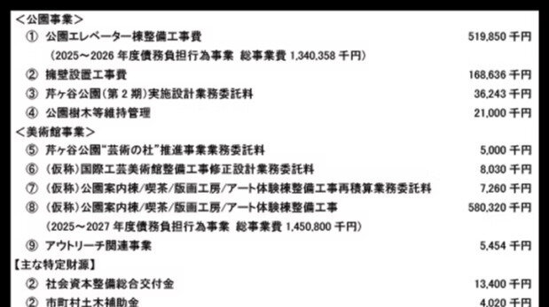 ・アート体験棟整備工事は2025年度12月に着工する計画で、これも2025年度の4月から700万円強の費用をかけて再積算が行われる計画となっています。