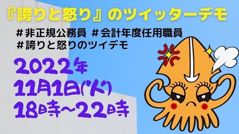 11月1日(火)18時から22時を中心にご協力をお願いいたします。第二弾ツイッターデモも準備しています。「#非正規公務員 #会計年度任用職員 #誇りと怒りのツイデモ」などハッシュタグをつけて、みなさんの思いと声をあげてくれると嬉しいです。