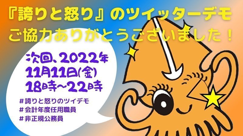 Обновление к петиции住民の生活を支える「非正規公務員(会計年度任用職員)」を雇い止めせず、労働条件を良くしてください昨日のツイデモへのご協力ありがとうございました。次回は11月11日です!