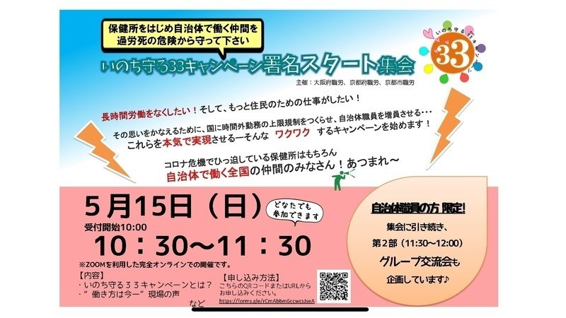 保健所や自治体の現場第一線で働く仲間の声をお伝えして、この署名やキャンペーンについてお知らせするために「署名スタート集会」を開催します。