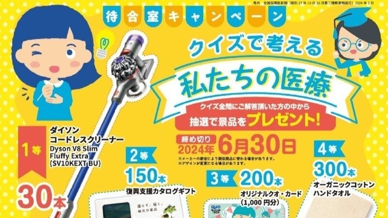 保険証クイズに答えて豪華景品のあたる企画(クイズハガキ)が
