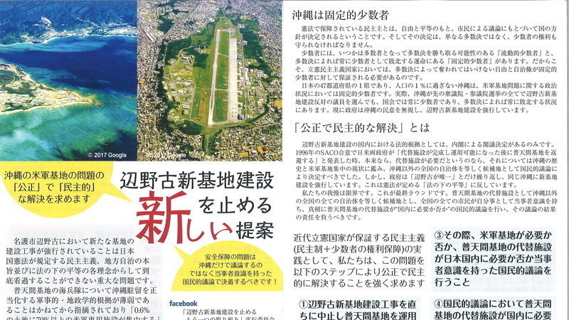 Petition update辺野古新基地建設を止める新しい提案 A New Proposal to Stop the New US Military Base Construction in Henoko,フライヤーが出来ました!更なる賛同の拡散をお願いします!