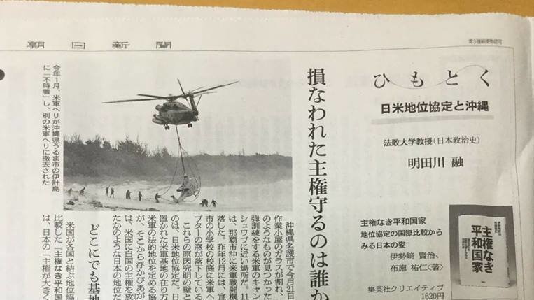 Petition update辺野古新基地建設を止める新しい提案 A New Proposal to Stop the New US Military Base Construction in Henoko,本日の朝日新聞に掲載されました(2018.6.30)