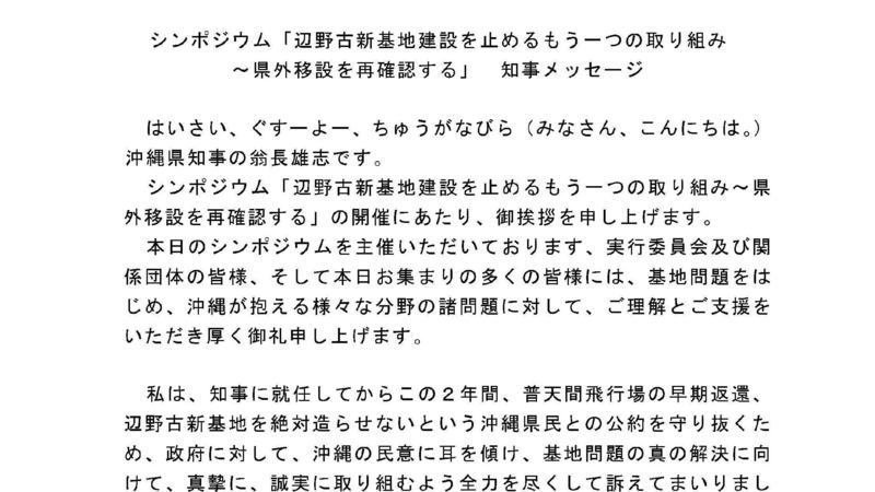 ~県外移設を再確認する」知事メッセージ
