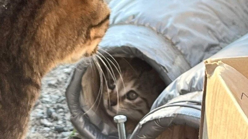 また、親子で引っ越してきた。このお母さんは見たことない子です。子猫三匹は人なれしてます。お母さんは逃げます。こんな時に何故引っ越してくる?危ないのに・・・