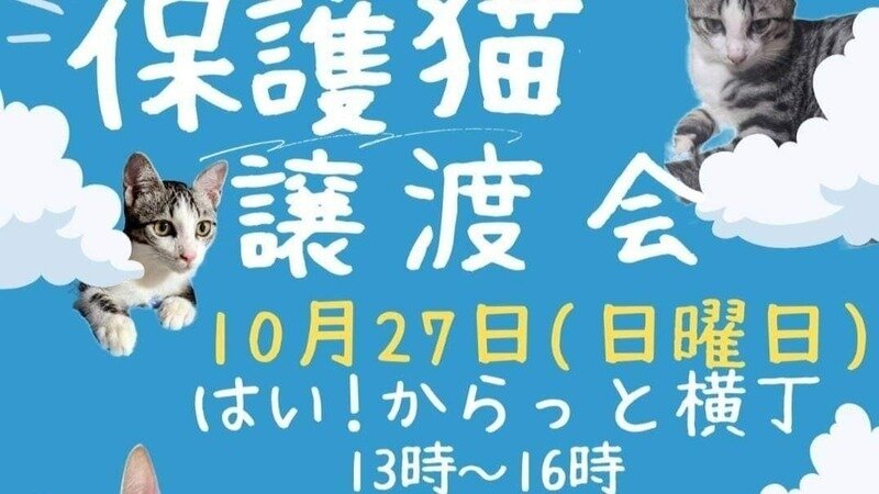 個人で猫ちゃんを保護してて里親さんを探されてる方の参加もOKです。
