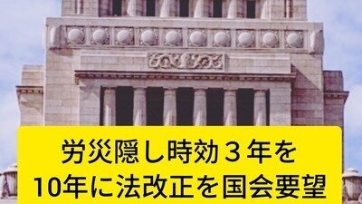 労災隠しの時効を10年に延長するよう法改正を要望します!