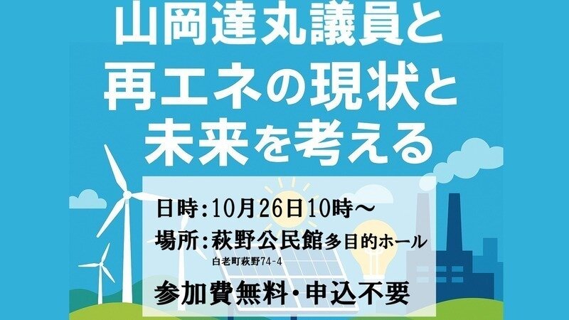 白老町のみならず、日本各地の再エネ事業の現状と未来を話し合いませんか?参加費無料・申し込みも不要ですので、再エネに関心をお持ちの方にはどうぞご参加ください。