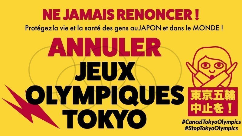 ENGLISH: We have just posted a French version of the campaign. Please help spread the message to your friends around the world! Here is the link: https://www.change.org/Cancel-Tokyo-Olympics-FR The English version: https://www.change.org/Cancel-Tokyo-Olympics